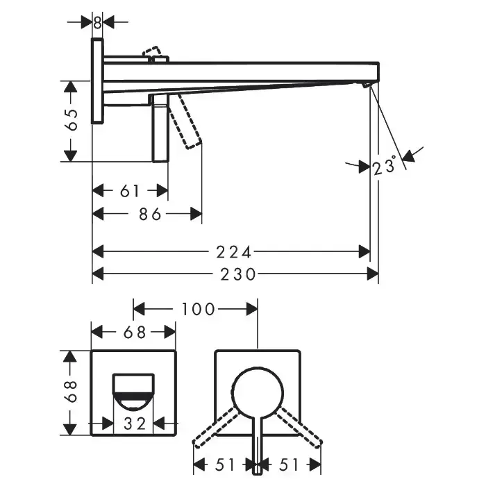HG Tecturis E Смеситель для раковины, однорычажный, настенный, с изливом 22,5, скрытого монтажа, хром