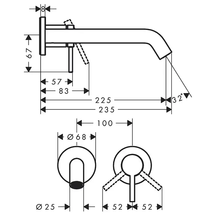 HG Tecturis S Смеситель для раковины, однорычажный, настенный, с изливом 22,5 см, цвет матовый белый