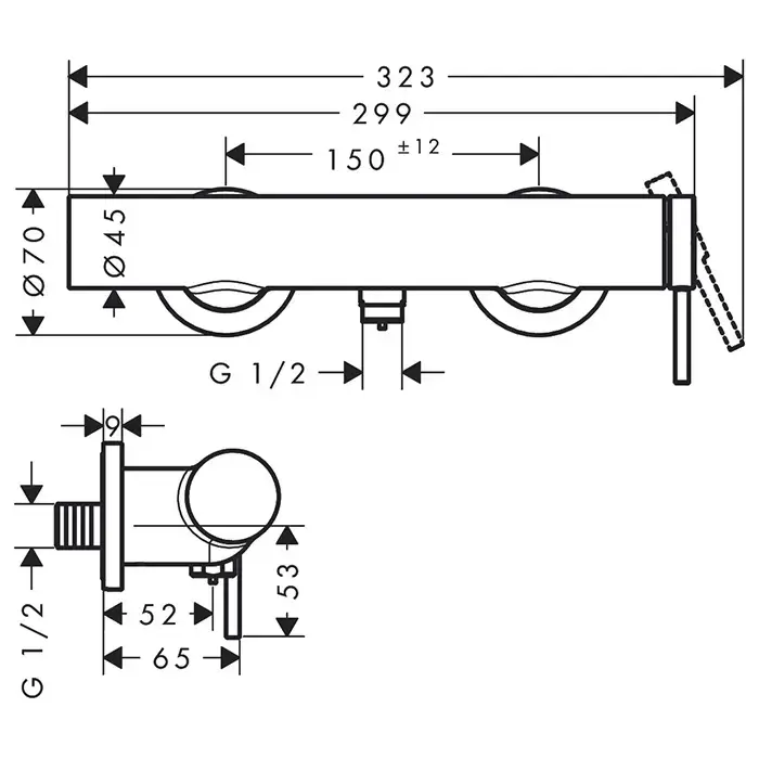 HG Tecturis S Однорычажный смеситель для душа наружного монтажа, цвет матовый белый