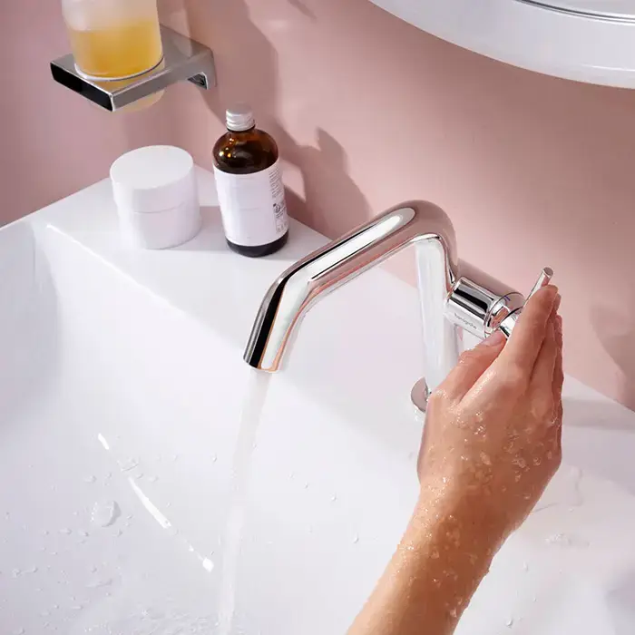 HG Tecturis S Смеситель для раковины, однорычажный, Fine 110 CoolStart с клапаном push-open, хром