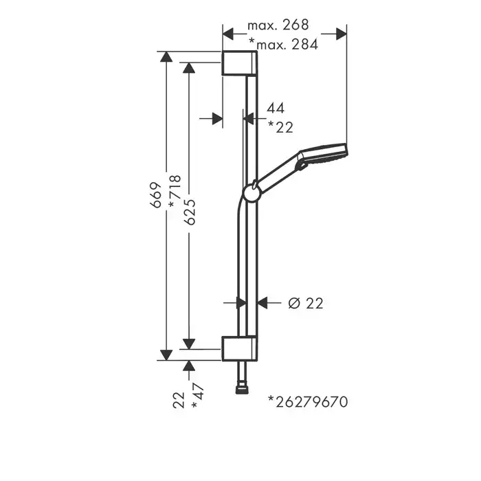 HG Vernis Blend Душевой набор Vario 650 мм (ручной душ, душевая штанга, шланг для душа, ползунок), EcoSmart, цвет: хром