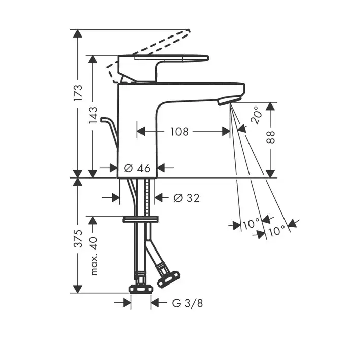 HG Vernis Blend Смеситель для раковины 100 CoolStart, на 1 отв, с донным клапаном, излив 108мм, h88мм, цвет: матовый черный