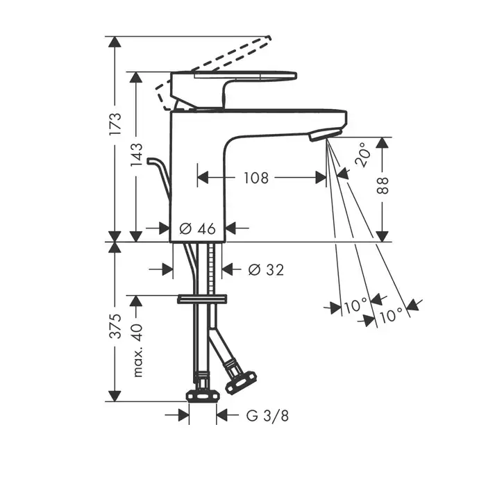 HG Vernis Blend Смеситель для раковины 100, с металлическим донным клапаном, излив 108мм, h88мм, цвет: хром