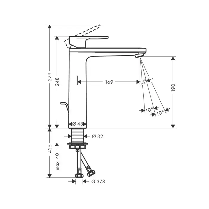 HG Vernis Blend Смеситель для раковины 230, на 1 отв, с донным клапаном, излив 169мм, h190мм, цвет: хром