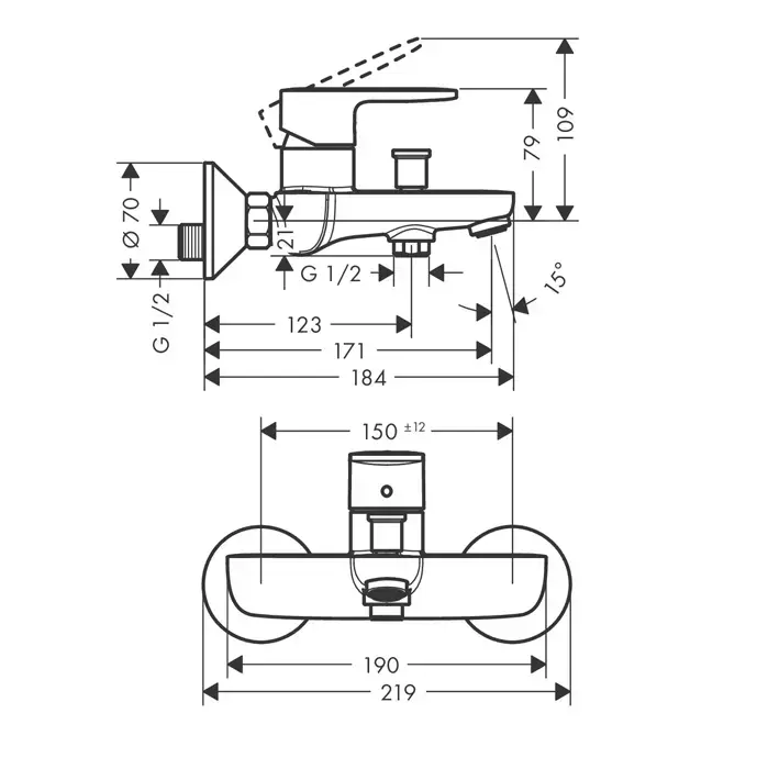 HG Vernis Blend Смеситель для ванны, однорычажный, внешнего монтажа, цвет: хром