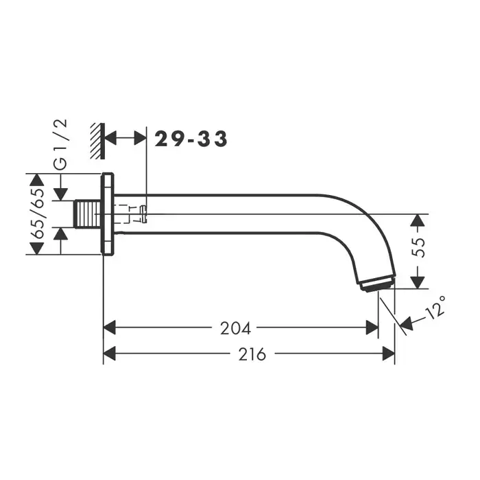 HG Vernis Shape Излив для ванны 204 мм., настенный монтаж, цвет: хром