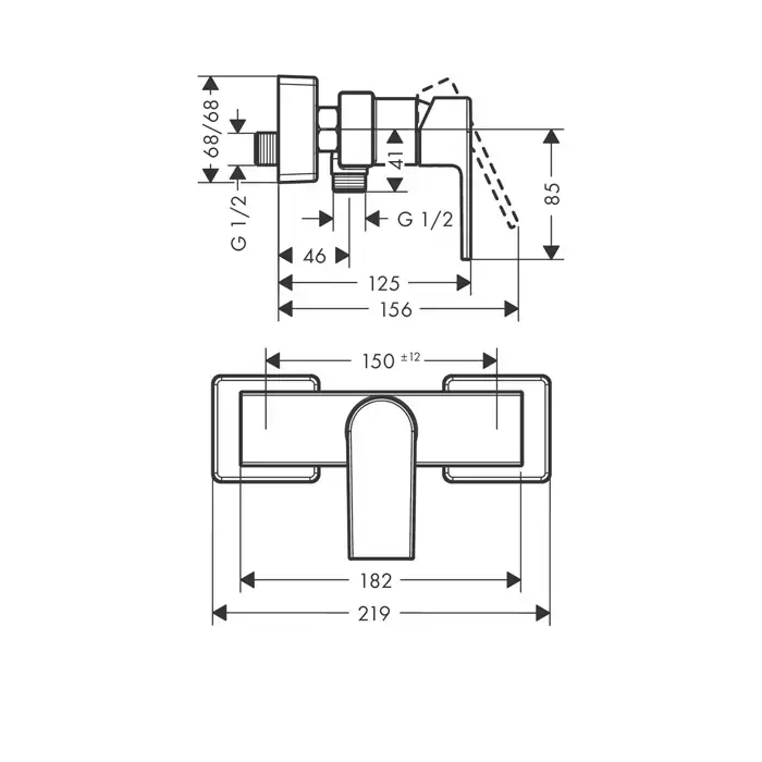 HG Vernis Shape Смеситель для душа, однорычажный, настенный, цвет: хром