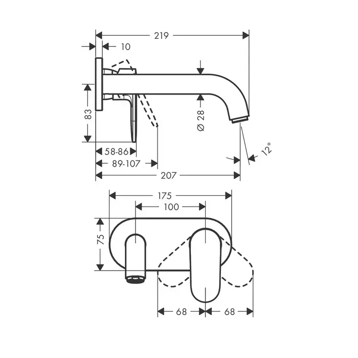 Hansgrohe Vernis Shap Смеситель для раковины, настенный, излив 204 мм, внешняя часть, цвет: матовый черный