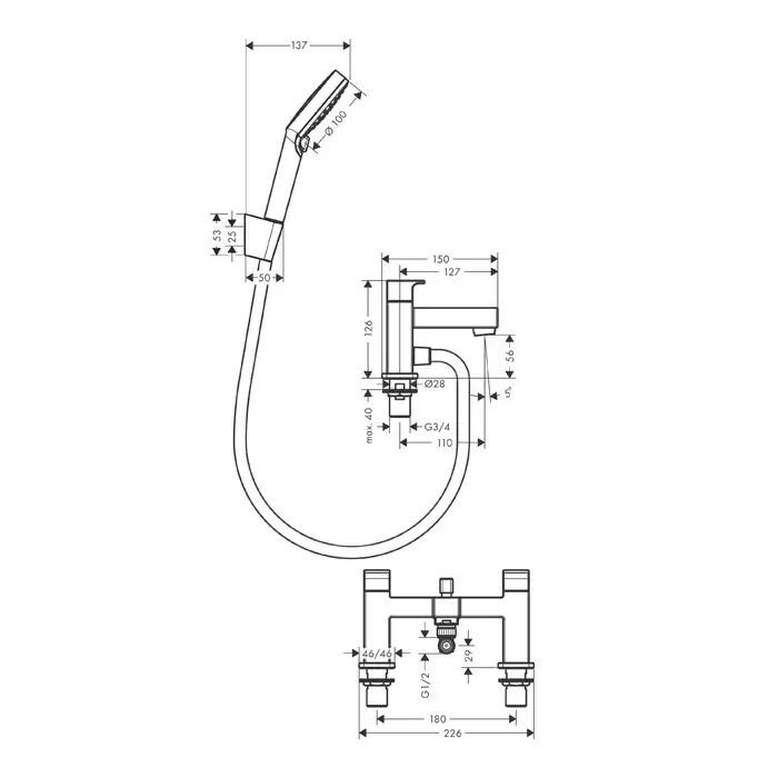 Hansgrohe Vernis Shape Hansgrohe Vernis Blend Смеситель для ванны, на 1 отв., с ручным душем, цвет: хром