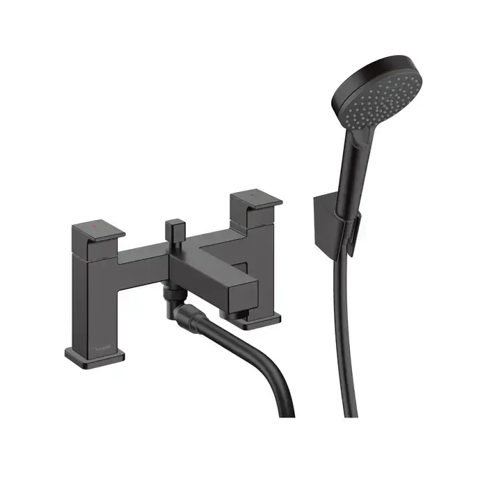 HG Vernis Shape Смеситель на борт ванны, на 2 отверстия, и ручной душ Vernis Blend Vario, цвет: матовый черный