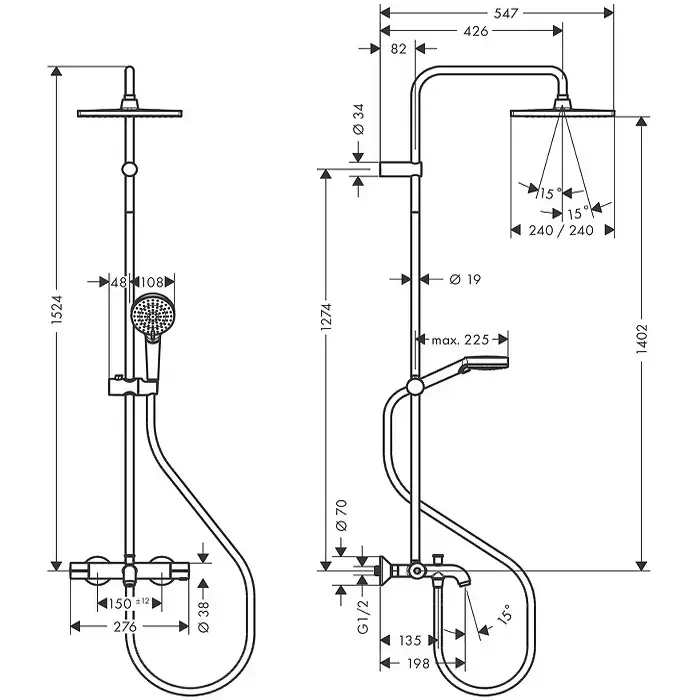 HG Vernis Sh Showerpipe 240 для ванны цвет матовый черный