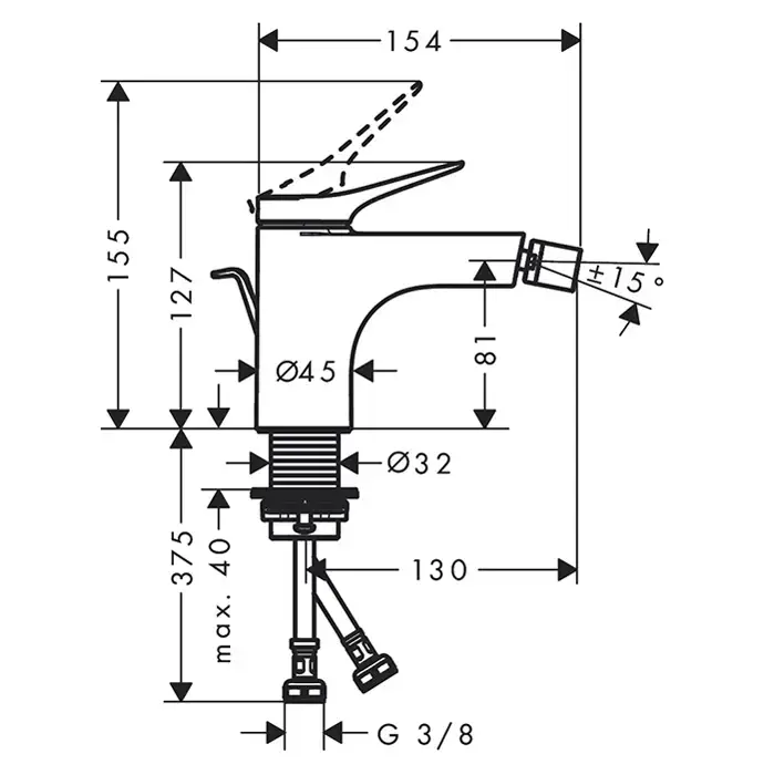 HANSGROHE VIVENIS Смеситель для биде на 1 отверстие, однорычажный, с донным клапаном, цвет черный матовый