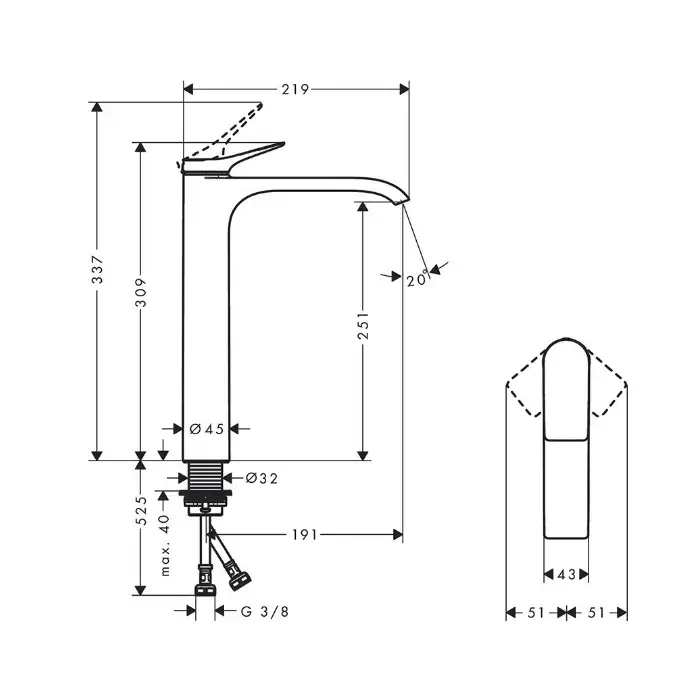 Hansgrohe Vivenis Смеситель для раковины, на 1 отв., высота: 30.9см., излив: 21.9см., цвет: хром
