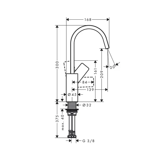 HG Vivenis Смеситель для раковины, однорычажный, 210 с поворотным изливом, без сливного гарнитура, матовый черный