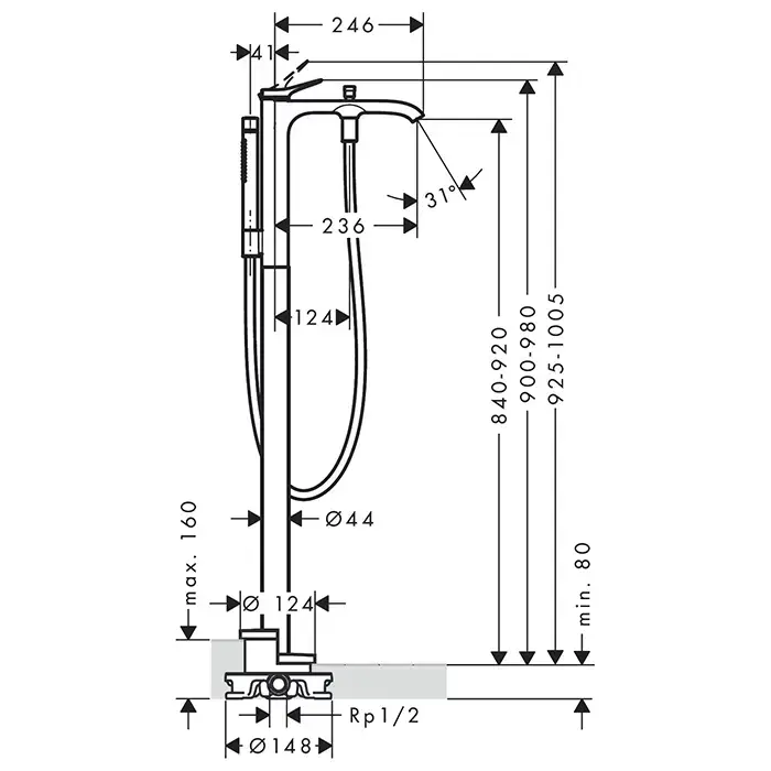HANSGROHE VIVENIS Смеситель для ванны наполньный, с ручной лейкой, цвет хром
