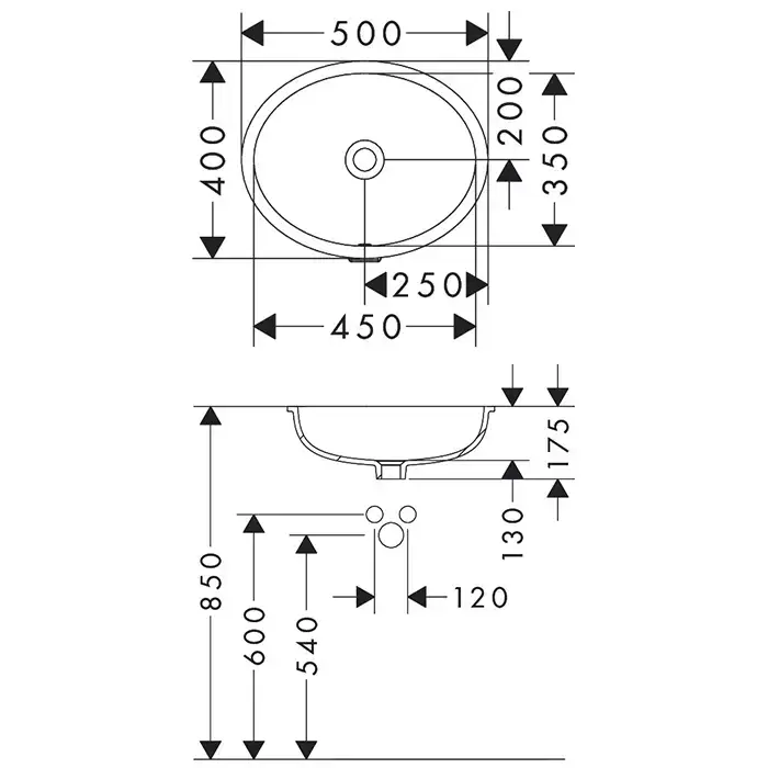 HG Xuniva D Раковина подстольная 450х350, с переливом, белый