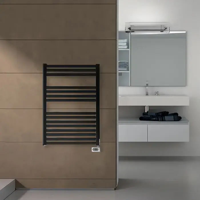Irsap Ares Полотенцесушитель электр. 58x111.8x3см (22 трубок-2 пром), мощность:700 ватт, с электр/термостатом, провод: 120см, цвет: черный матов(K1)