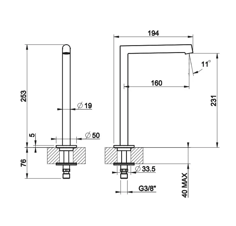 Gessi Ingranaggio Смеситель для раковины, встраиваемый, однорычажный, излив: 18.5-20.5см., внешняя часть, цвет: Black Metal Brushed PVD