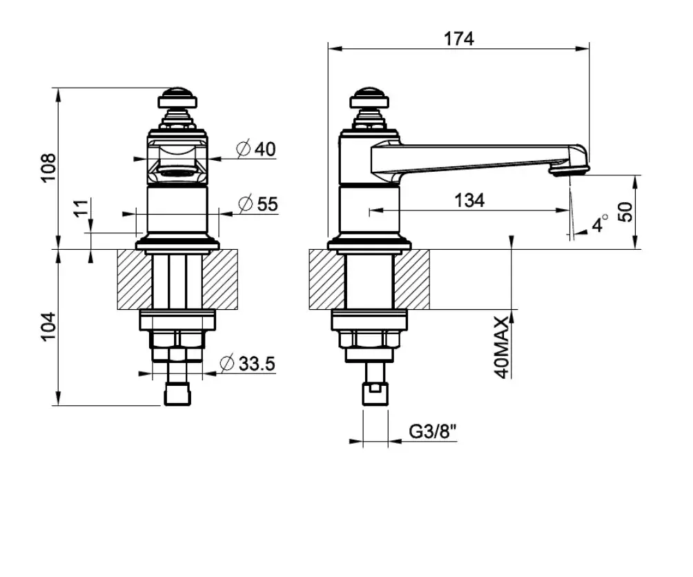 Gessi Venti20 Смеситель для раковины, на 1 отв., с донным клапаном, цвет: Antique Brass