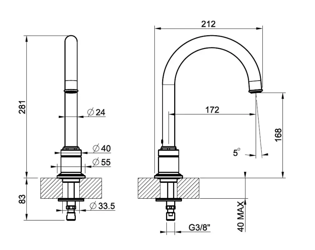 Gessi Venti20 Смеситель для раковины на 3 отверстия, высота излива 168 мм., в комплекте с донным клапаном, цвет: хром