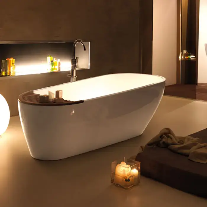 KERASAN Aquatech Ванна из минерального материала 170х70см, цвет белый (без декоративной накладки из натур. дерева)