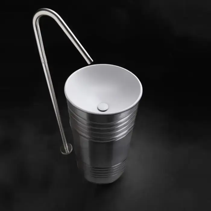 Kerasan Artwork Barrel Раковина 45x90 см, без отв., напольная, слив в стену, цвет: белый/серебро