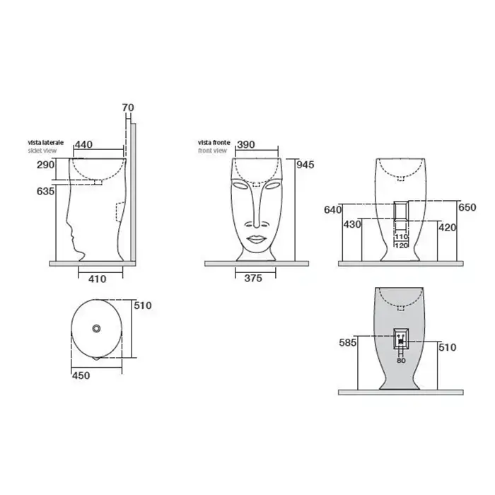 Kerasan Artwork Раковина 45х51х h94.5см., свободностоящая "MOLOCO", с отверстием для слива в пол, цвет: белый матовый