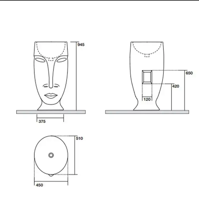 Kerasan Artwork Раковина 45х51х94.5 см, без отв., свободностоящая "MOLOCO", слив в стену, цвет: Borgogna matt