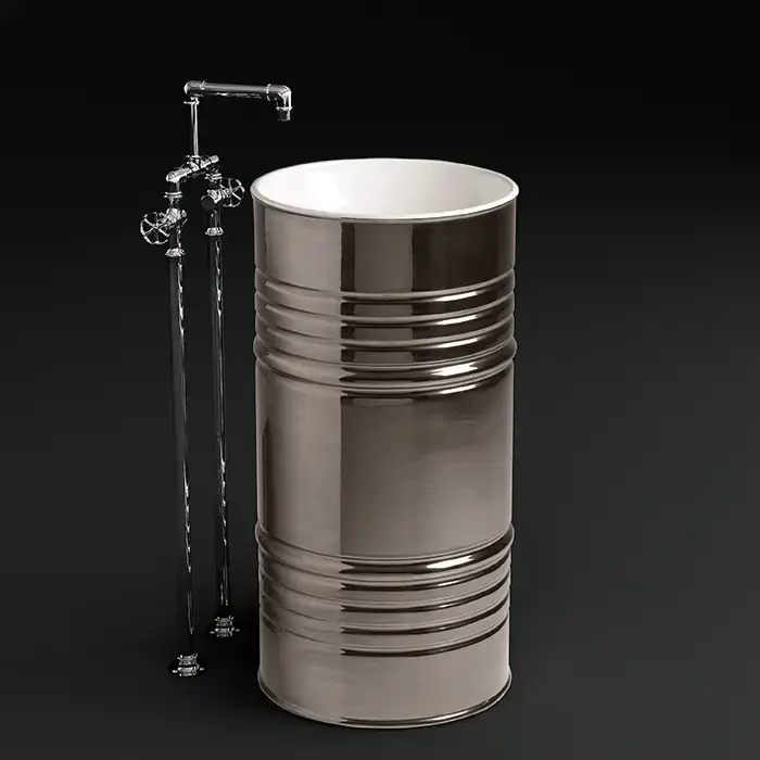 Kerasan Artwork Раковина свободностоящая "BARREL" d 45,H 90 см, без отв под смеситель, слив в стену, цвет: Bianco-platino