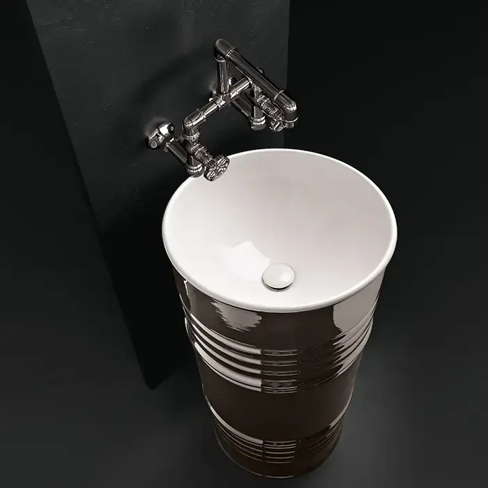 Kerasan Artwork Barrel Раковина 45x90 см, без отв., напольная, слив в стену, цвет: черный матовый
