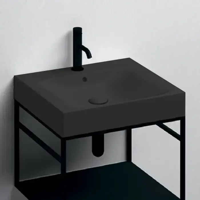 KERASAN CENTO Раковина 600х450 мм., с 1 отверстием для смесителя, с переливом, цвет черный матовый