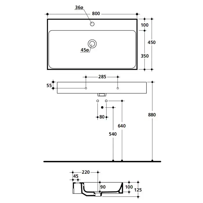 Kerasan Cento Раковина 80х45 см, 1 отв., подвесная, цвет: белый