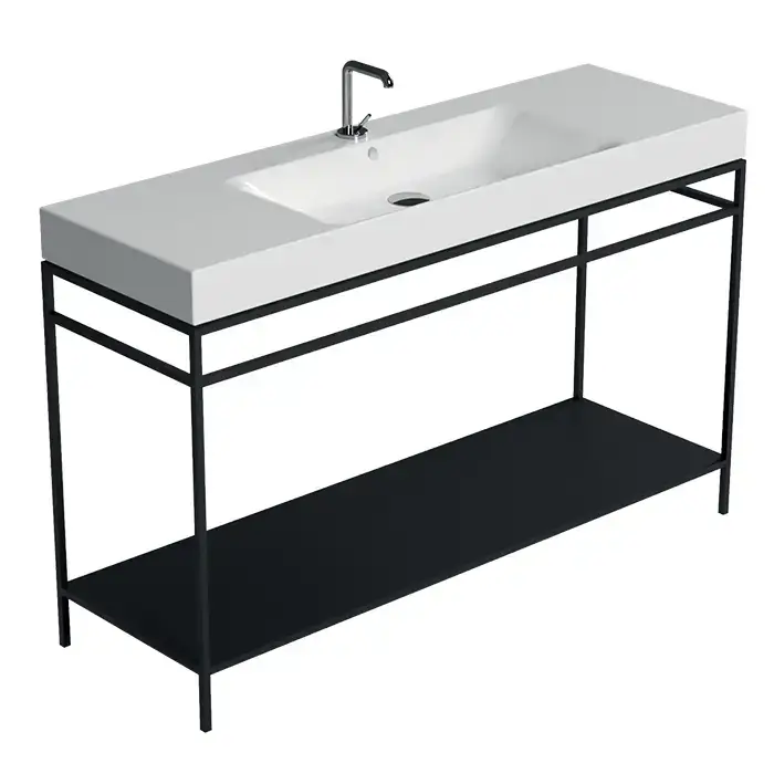 Kerasan Cento Стальная структура 140х45см, с раковиной на 1 отв,, напольная, с металлической полкой, цвет: черный матовый