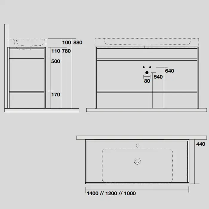 KERASAN Cento раковина двойная140х45 подвесная с 1отв на каждой раковине под смеситель, цвет белый