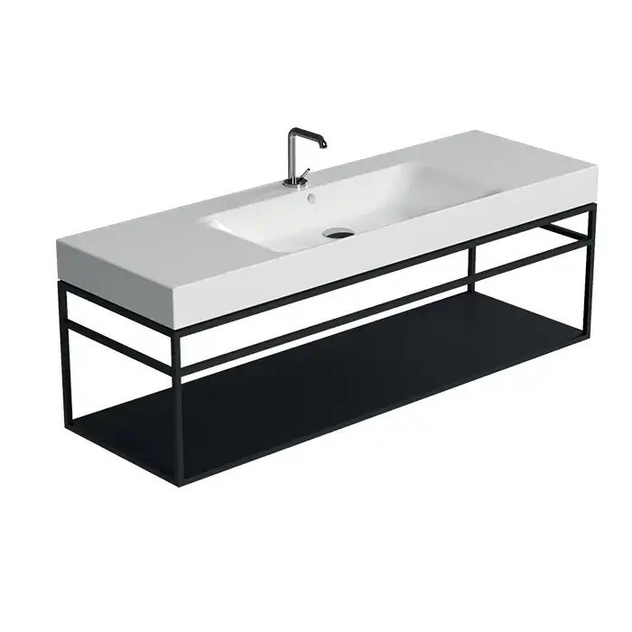 Kerasan Cento Стальная структура 140х45см, с раковиной на 1 отв,, подвесная, с металлической полкой, цвет: черный матовый