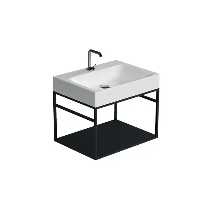 Kerasan Cento Стальная структура 60х45см, с раковиной на 1 отв, подвесная, с металлической полкой, цвет: черный матовый