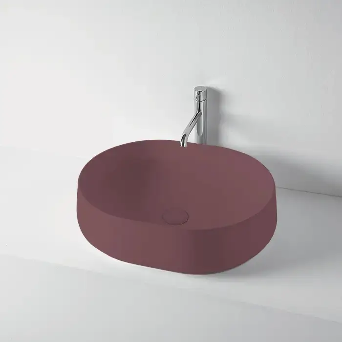 KERASAN F10 Раковина накладная 56х44 см, без отв под смеситель, цвет Бургундский матовый