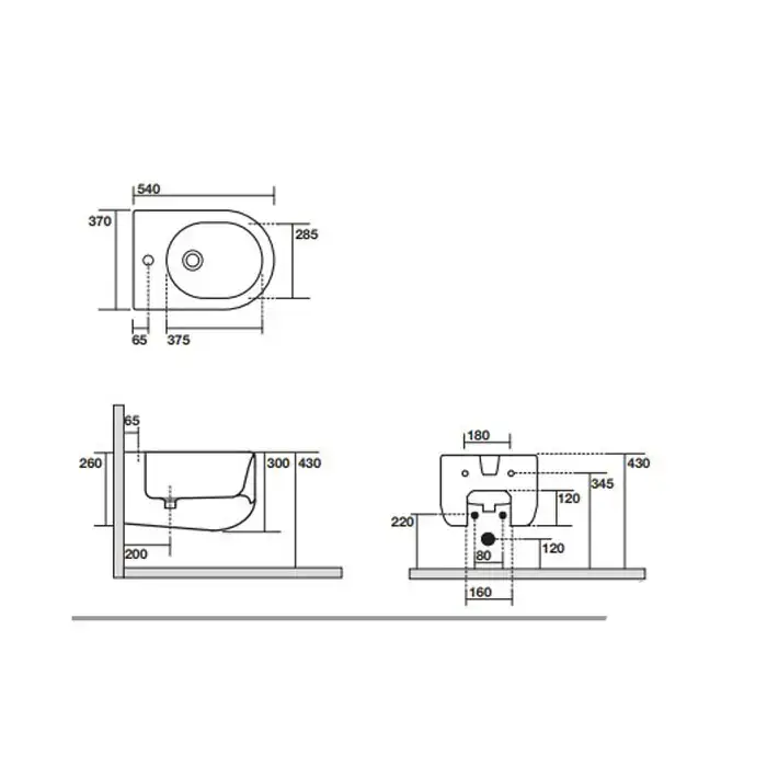 Kerasan Flo биде напольное приставное 56х37см, с 1 отв. под смеситель, с крепежом Wb5N в комплекте, цвет: белый
