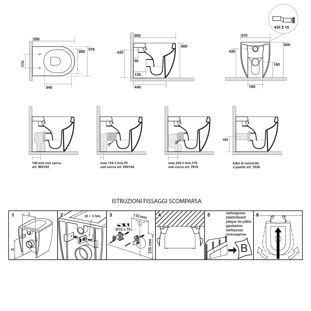 Kerasan Flo унитаз безободковый, приставной 55 см, слив универсальный, цвет белый (крепить на силикон или на крепеж 762901)