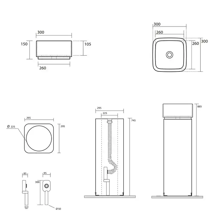 Kerasan Hako Раковина квадратная 30см, на пьедестале, без отв., цвет: verde matte