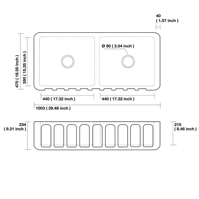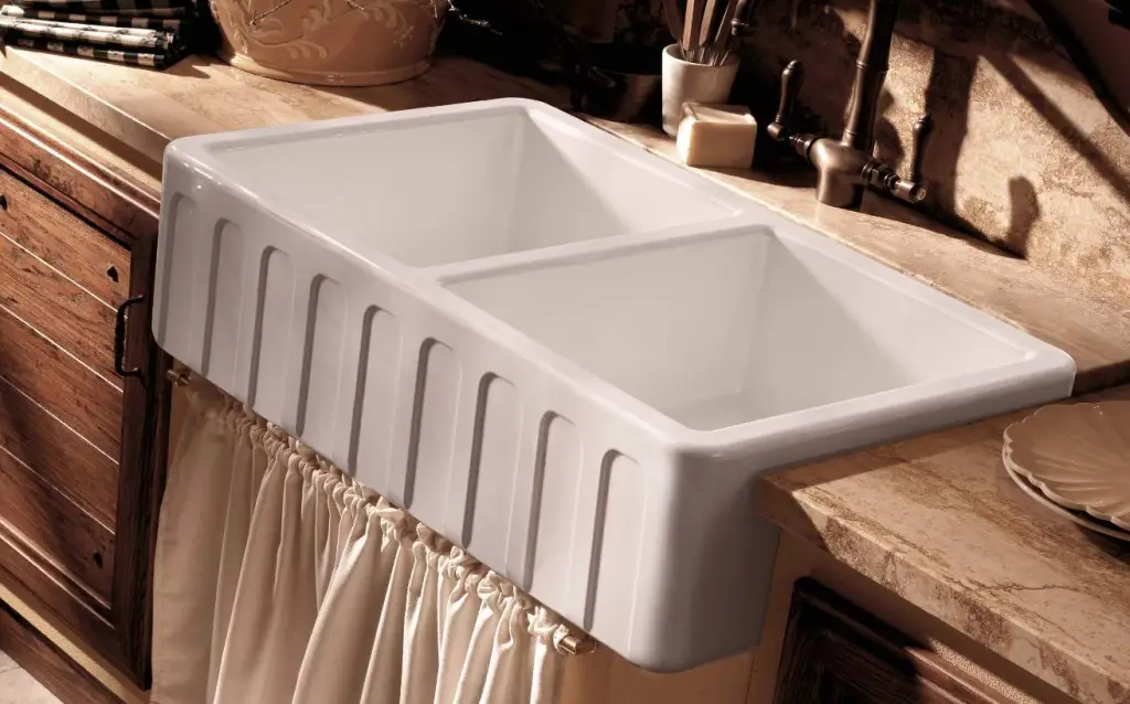 KERASAN Hanna Glasse SURREY Раковина керамическая кухонная 1003x470x230 мм,без отв под смеситель, без сифона, толщина 40 мм, цвет белый