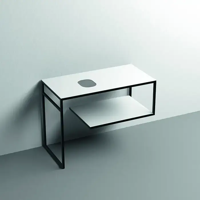 Kerasan Thelma Металлическая структура для раковины 108х74см, напольная, с полкой, ящиком, с 1 отв., с полотенцедержателем, цвет: белый матовый/черный матовый