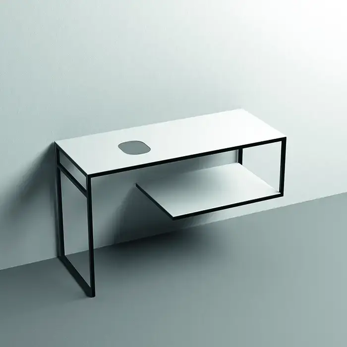 Kerasan Thelma Металлическая структура для раковины 108х74см, напольная, с полкой, ящиком, с 1 отв., с полотенцедержателем, цвет: белый матовый/черный матовый
