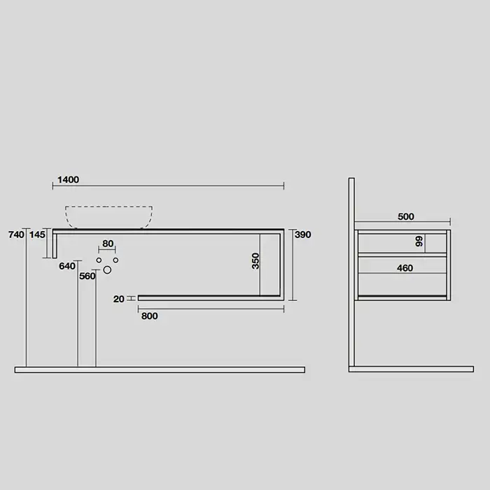 Kerasan Thelma Металлическая структура для раковины 140х74см, напольная, с полкой, ящиком, с 1 отв., с полотенцедержателем, цвет: черный матовый
