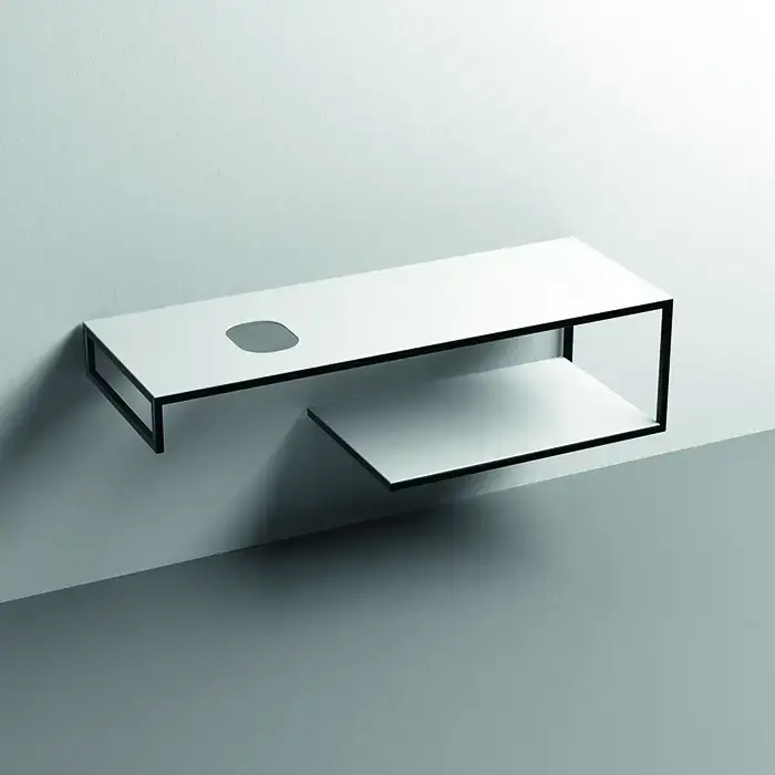KERASAN LOUISE Структура металлическая подвесная 140 см, нерж сталь, с полкой, с отв под раковину,с полотенцедерж, цвет белый матовый
