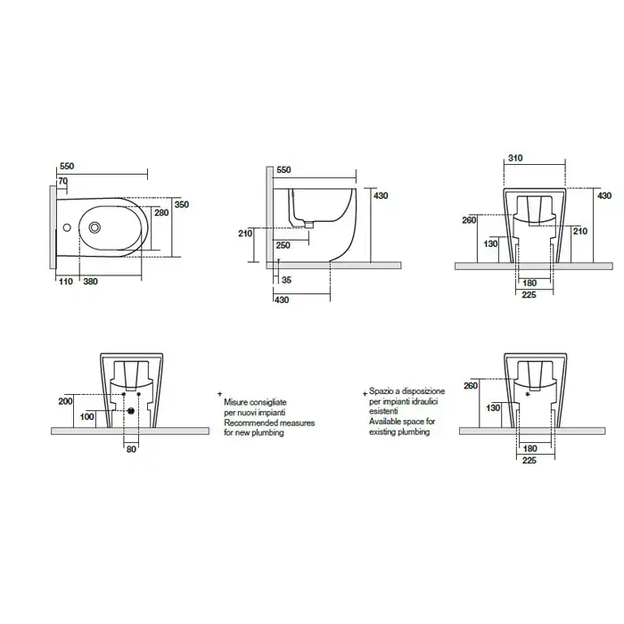 Kerasan Nolita Биде напольное с 1 отв. под смеситель 55х35 см, с креплениями WB5N, цвет: Ferro matt
