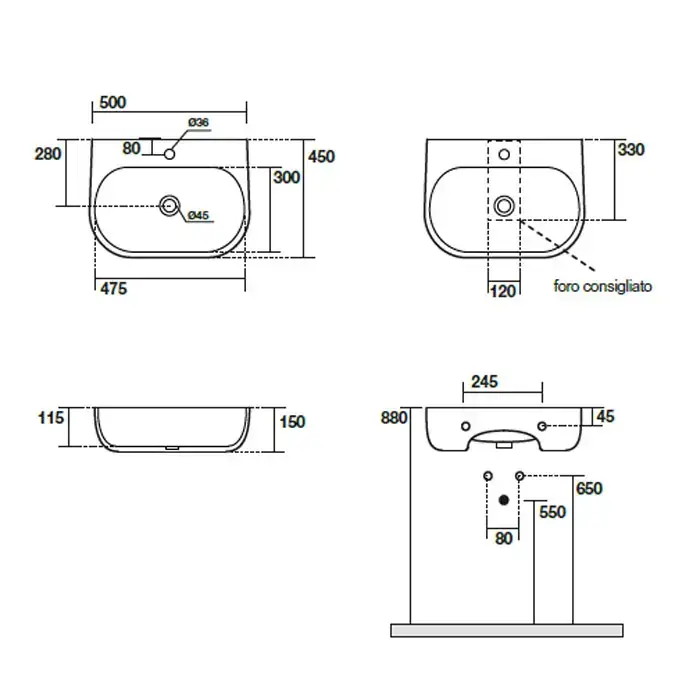 Kerasan Nolita Раковина подвесная/накладная 50х45 см, с 1 отв под смеситель, цвет белый глянцевый