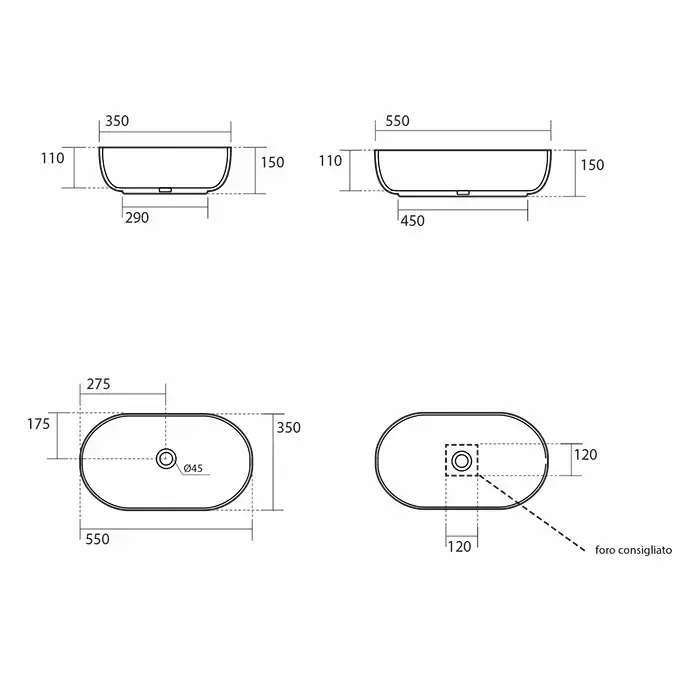 Kerasan Nolita Раковина накладная 55х35 см, без отв под смеситель, цвет белый глянцевый