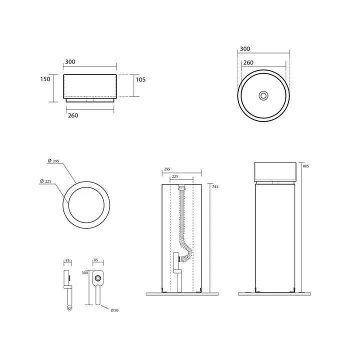 Kerasan Oke Раковина круглая 30см, на пьедестале, без отв., цвет: белый матовый