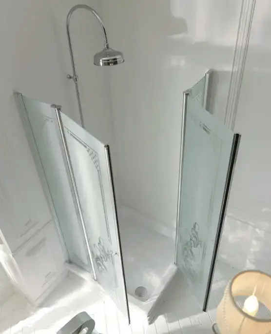 Kerasan Retro Душ. ограждение 100х100х180см., матовое стекло с декором для квадратного поддона 1340, проф.хром,мат.стекло+декор
